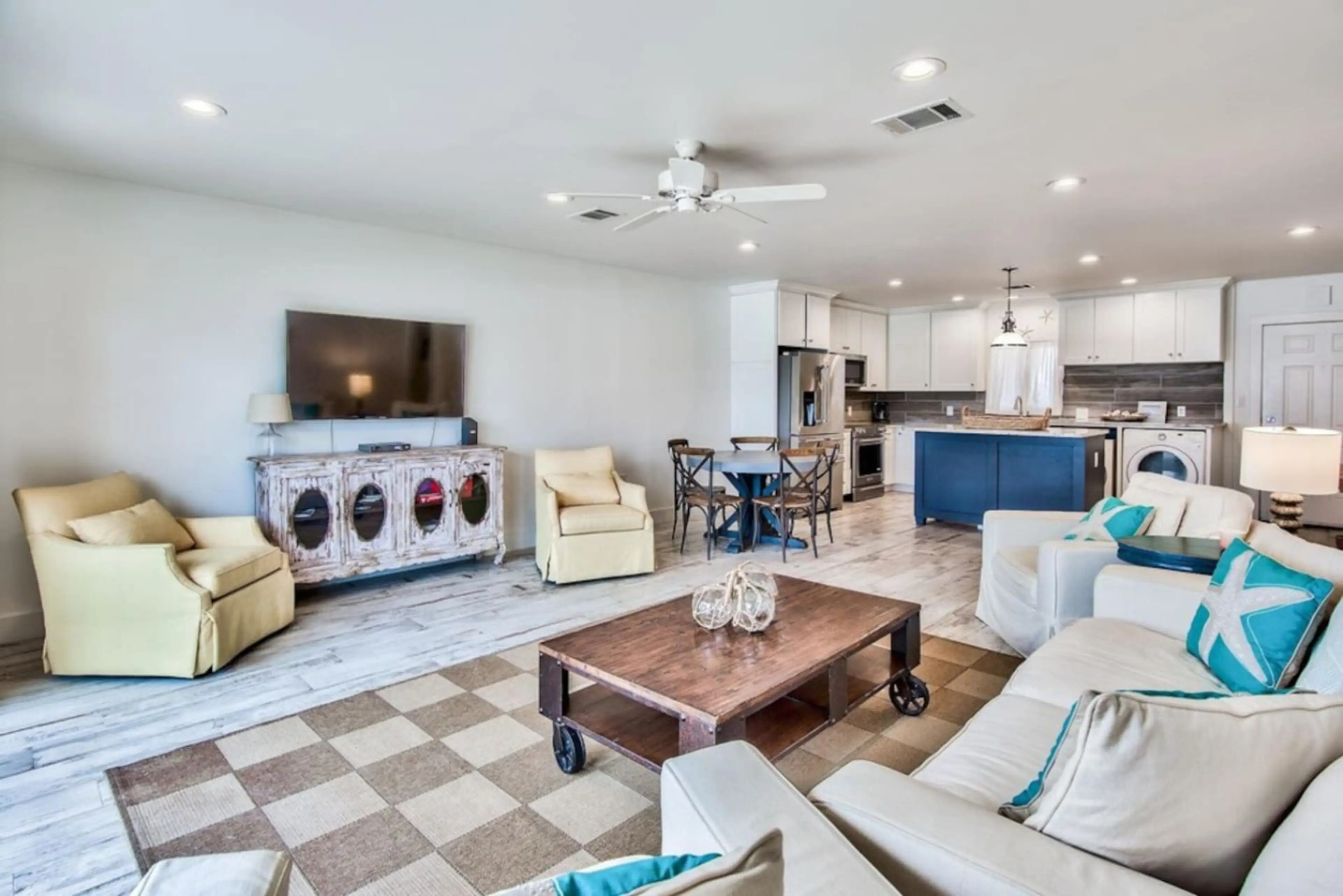 The kitchen is completely renovated with granite, new stainless appliances, and an island and bar area. It is set and ready to grill your daily catch🎣🎣🎣, or you can cook outside 🧺at the poolside bar area! Either way, you overlook the white sands and crystal clear waters of the Gulf! 🧜🏻♀️