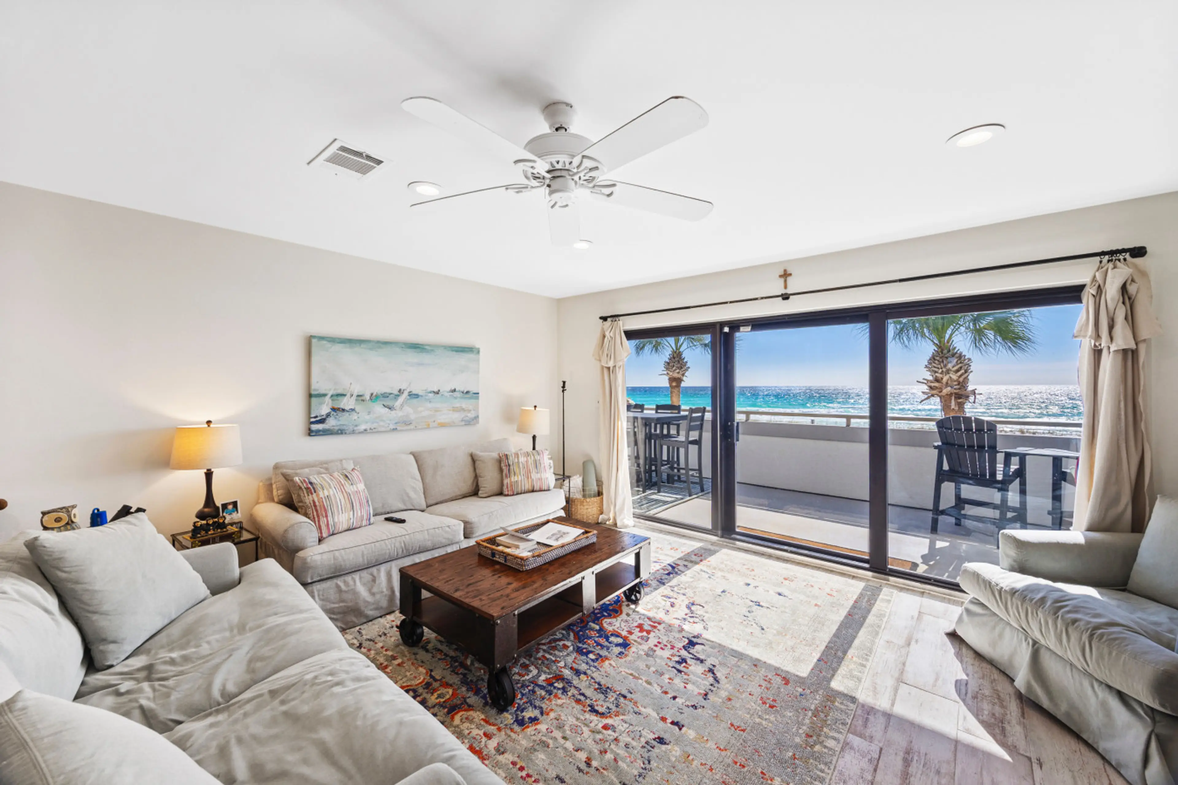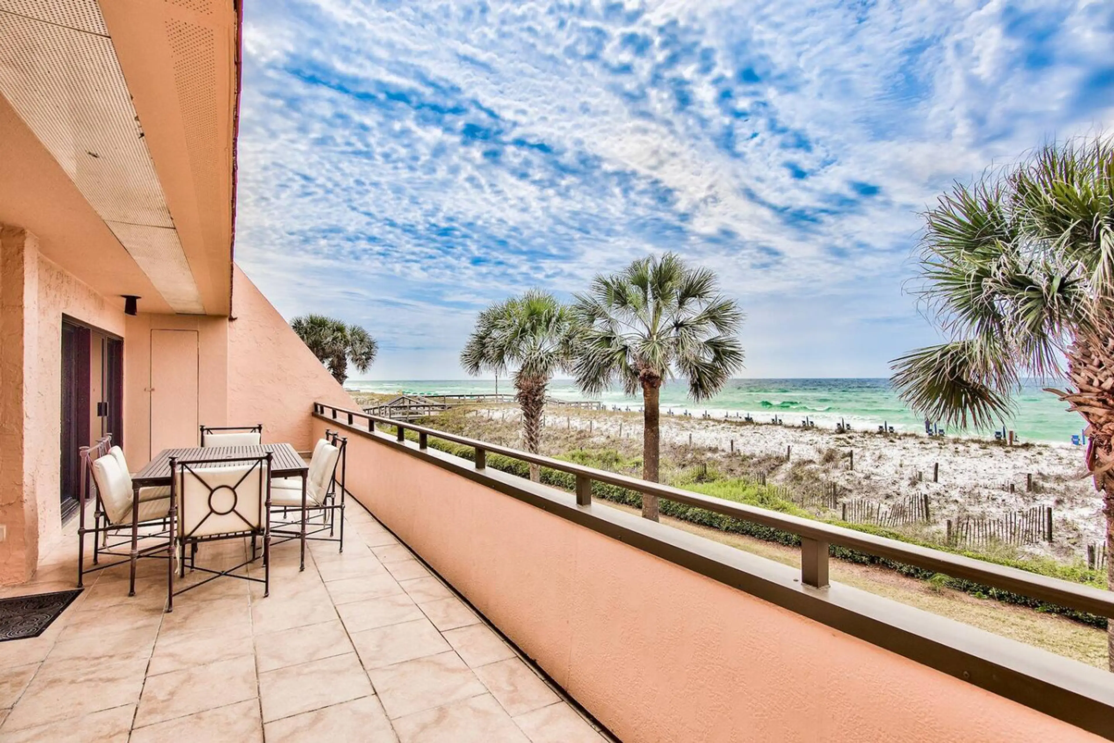 Beautifully remodeled condo ON THE BEACH ( like it’s on the sand so authentically beachfront )! It is a gated, restricted area on one of the few private beaches in Destin. When staring out, you only see the ocean- the pool is not in the line of sight, and the balcony is enormous-3x the size of most,...